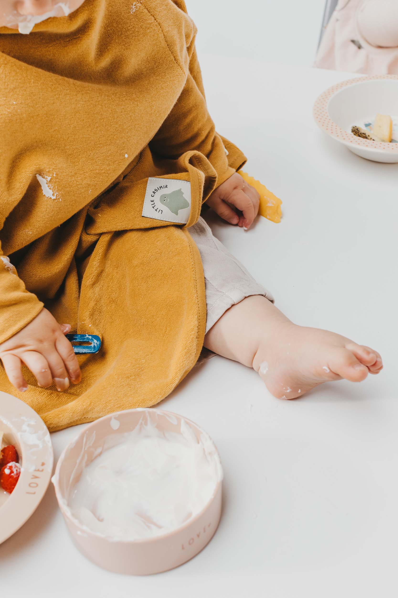 Our long-sleeved terry bib is ideal for all activities – whether crafting, painting, or enjoying the first meals.
